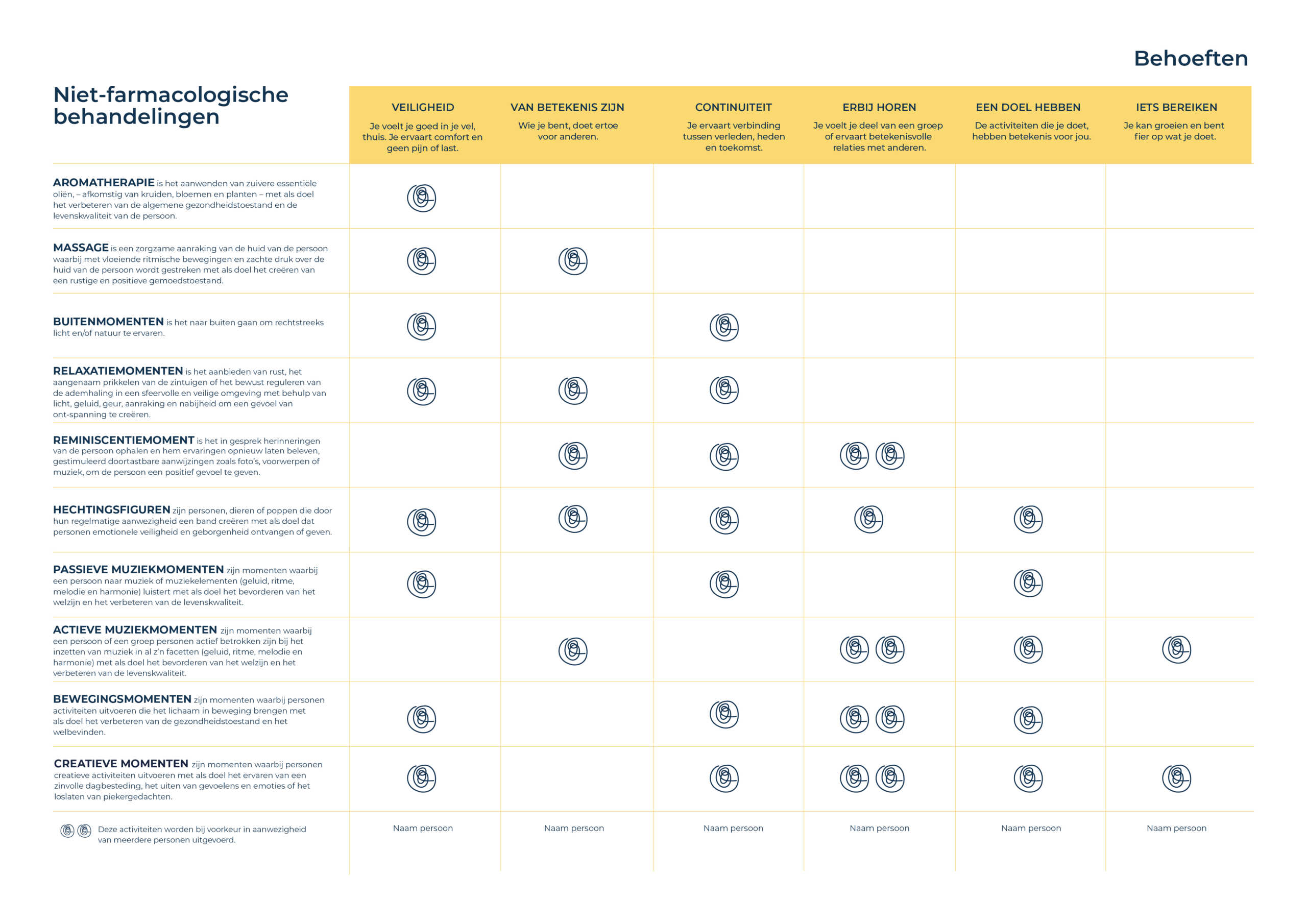 Om gedrags- en gemoedsveranderingen bij bewoners of patiënten beter te begrijpen, werd de toolkit behoeften gebaseerde zorg ontworpen en getest. Deze toolkit bevat een Gazette, een identiteitskaart (Varken) en een stappenplan behoeften gebaseerde zorg.